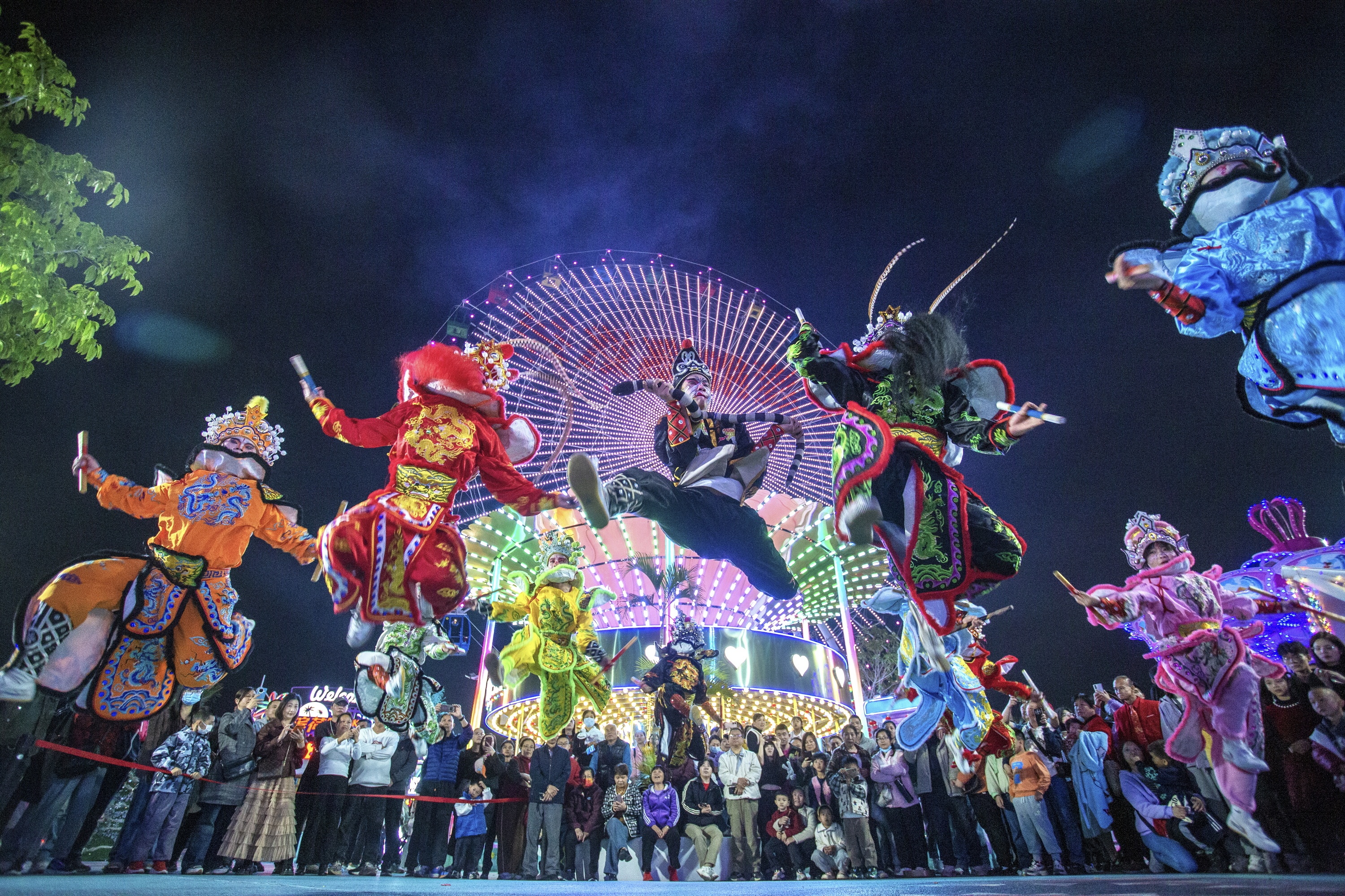 2026年2月19日,英歌舞队在广东省佛山市高明区滨荷Park生态文创园街头巡游表演。