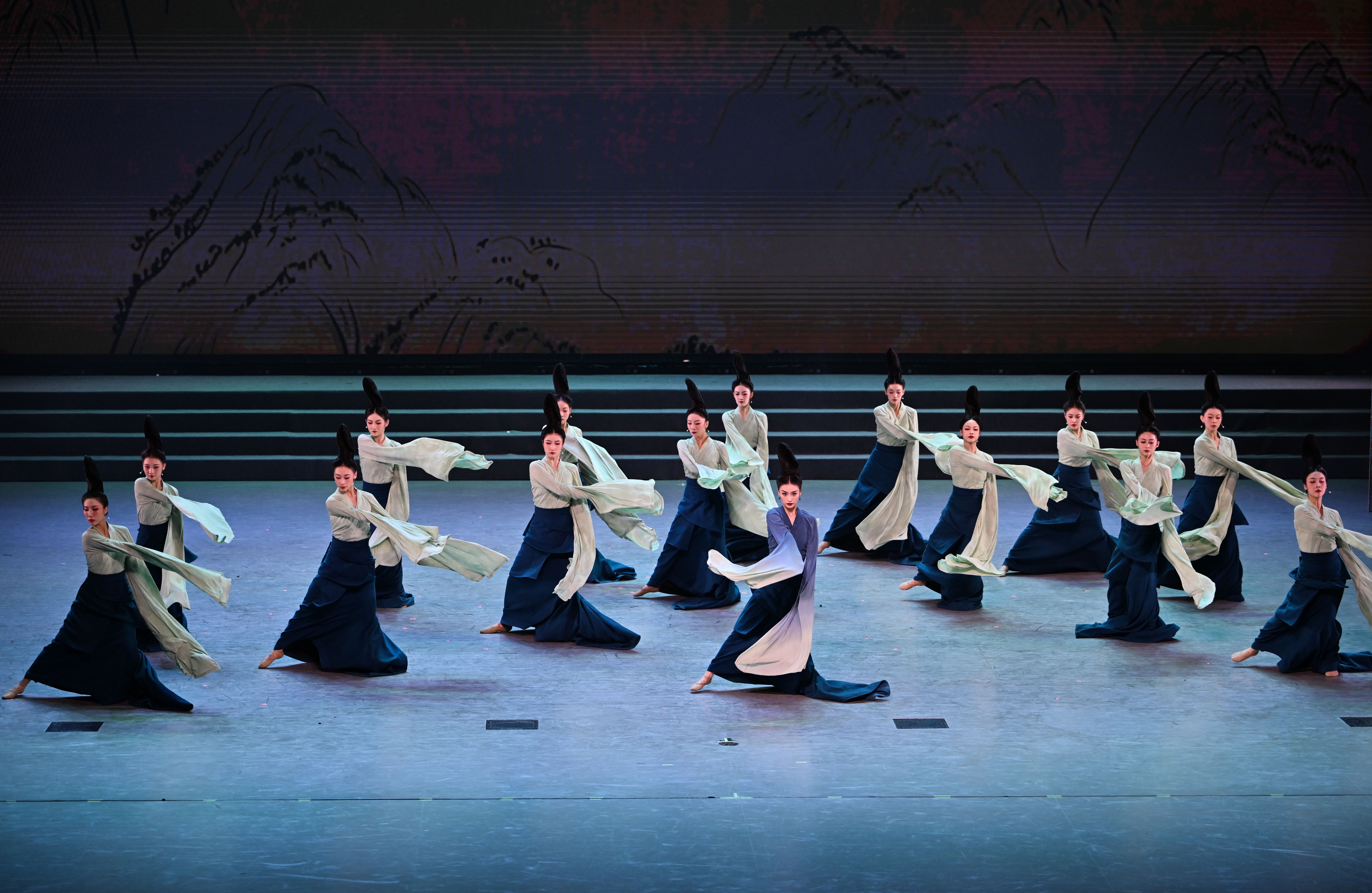 2023年7月29日,演员在联欢会现场表演《只此青绿》。当晚,“青春 In Time”第31届世界大学生夏季运动会运动员联欢会在成都大运村艺术中心大剧场举办。联欢会以魔术、舞蹈、演唱等艺术形式为桥梁,推动中外青年艺术家、运动员、大学生及志愿者代表互动交流,营造欢乐、友爱的大运氛围。