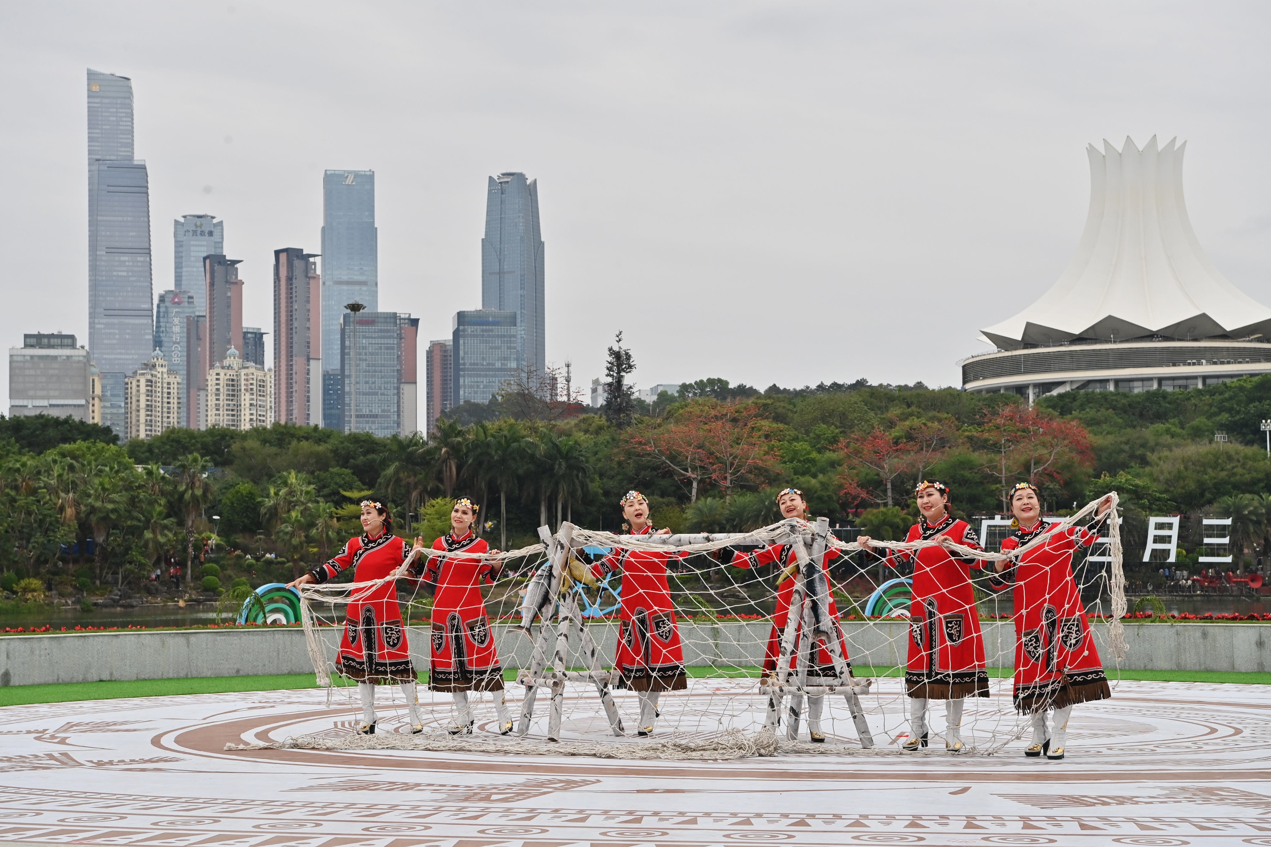 2025年3月31日,黑龙江村歌队队员在“广西三月三·八桂嘉年华”开幕式暨“四季村歌”活动启动仪式现场演唱《乌苏里船歌》。
