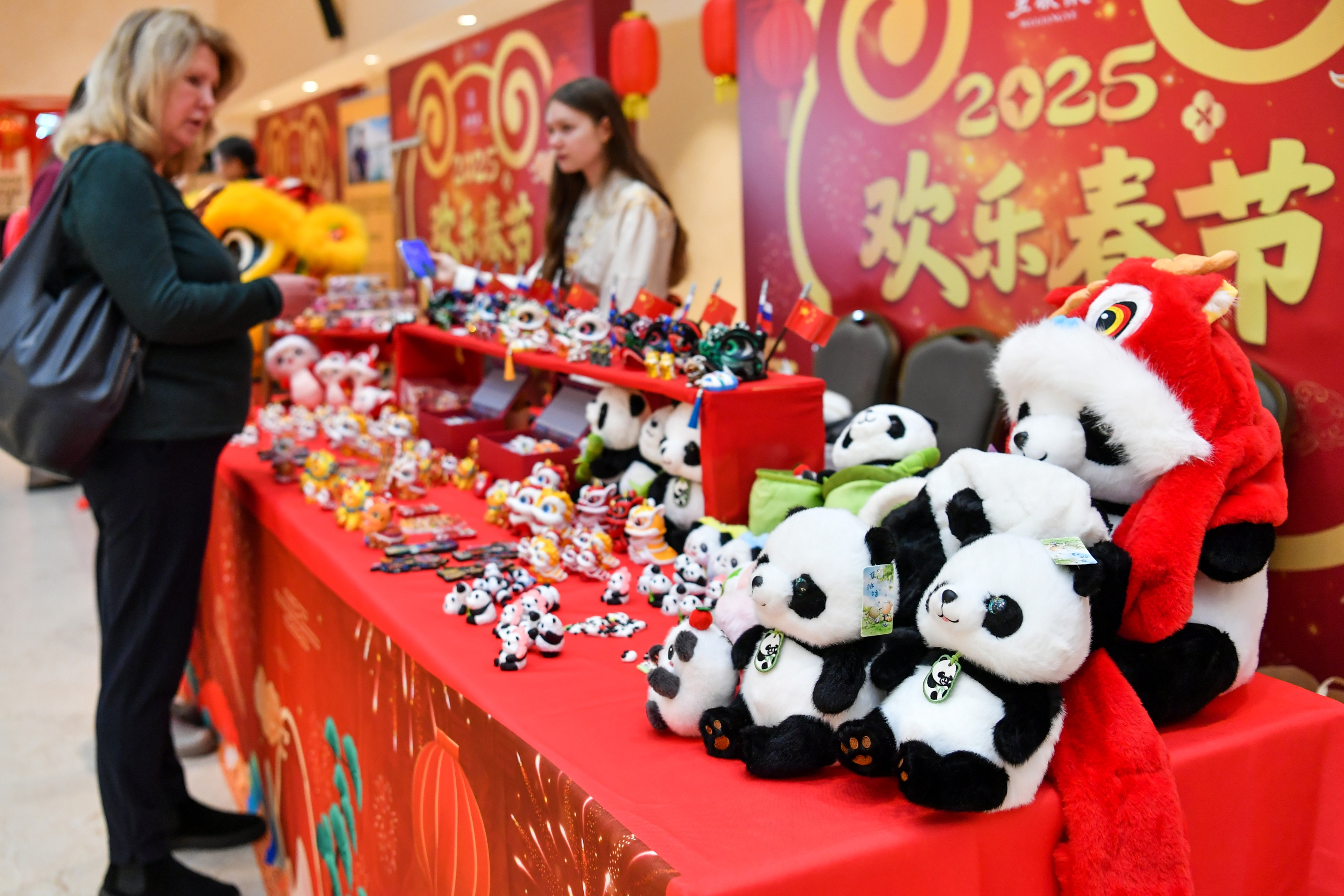 2025年1月28日在俄罗斯莫斯科举行的新春庙会活动上拍摄的文创产品。